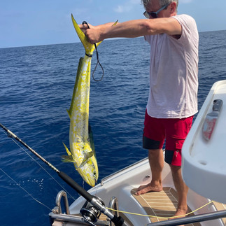 Dorade und Tuna, es reicht für einige Mahlzeiten und frisches Sashimi. Manchmal sind schon andere hungrige Mäuler daran gewesen.