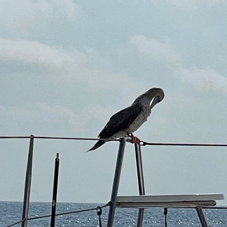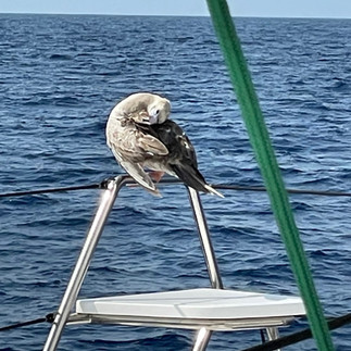 Ein Ganet begleitet uns drei Tage und Nächte. Am Westcap von Madagaskar verlässt er uns wieder.