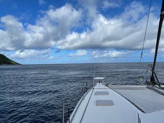 Wir erwarten 22 - 30 Knoten Wind, 2 - 3 Meter Welle, Kurs am Wind d.h. es wird bis Cosmoledo etwas ruppig. Ich nehme gleich zu Beginn eine Tablette gegen Seekrankheit, Gottfried ist da etwas stabiler und braucht dies nicht.